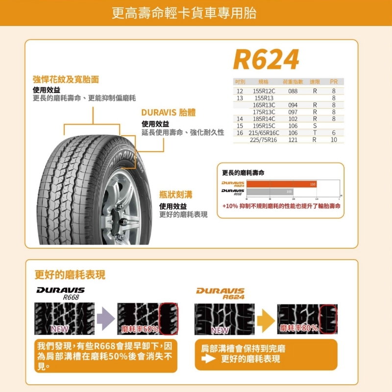 【BRIDGESTONE 普利司通】DURAVIS R624 185/14C(R624)貨車胎 二入組